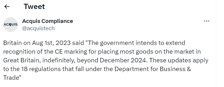 As of August 2023, CE marking will continue to be recognized in GB for most product types beyond 2024 — but that’s not a permanent excuse to ignore UKCA prep.